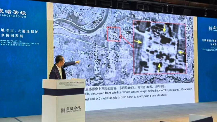 考古队根据“空-天-地-数”一体化的良渚考古范式,对涉及反山地区的各类历史影像进行处理解译。2024年4月,意外发现反山土墩外围存在一个长方形院墙的结构,同时发现类似的4-5个院落呈串珠状分布于长垄南部。分析还显示,反山院落存在河道、墓地、建筑、通道、水池等结构。