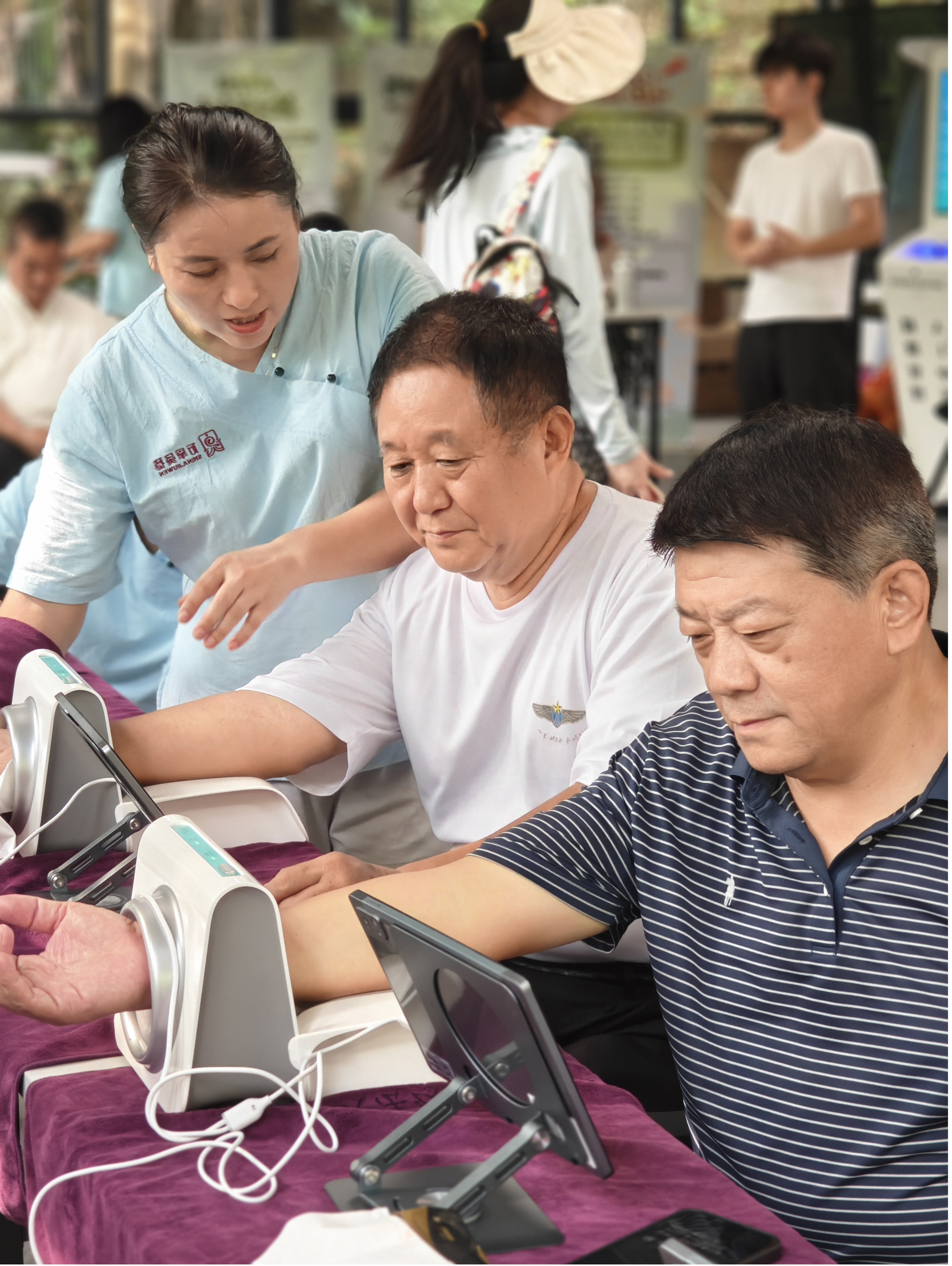 活动期间,两大机构充分发挥专业优势,围绕“科学养生、健康生活”核心主题,打造了多元化的健康服务内容。在健康知识科普区,工作人员通过视频展示、手册发放、现场答疑等方式,向居民游客普及常见疾病预防、合理膳食搭配、日常运动保健等实用知识,针对老年人关心的慢性病管理、年轻人关注的亚健康调理等热点问题,进行一对一细致讲解,帮助大家建立科学的健康观念。